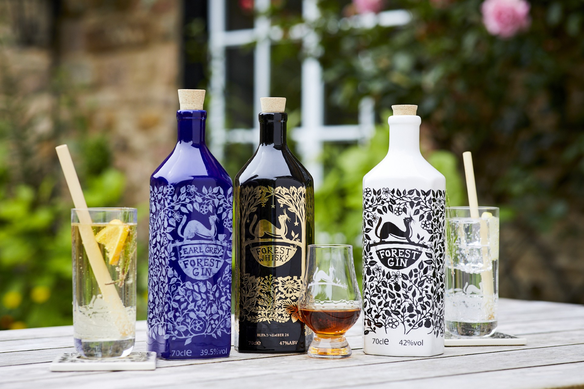 Forest Distillery produces whisky, gin, and rum in unique ceramic bottles designed to be repurposed or refilled via their refill initiative.