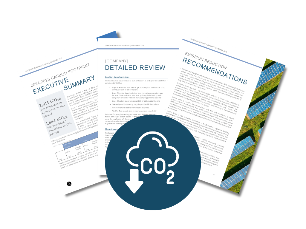 We clean, process and analyse the data to calculate your carbon footprint in compliance with the globally recognised GHG Protocol and aligned to regulatory reporting frameworks (e.g. SECR).